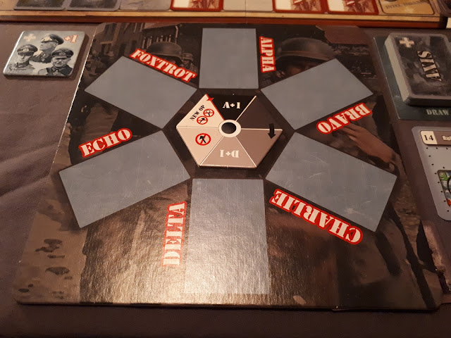 Côté combat, tout se gère au dé à 8 faces, avec des possibilités différentes selon, encore une fois, le camp : une attaque impériale sur les remparts se fait en lançant 2d8 et touche sur un 8, une attaque insurgée vers le bas des remparts se fait en lançant un 1d8 et touche sur un résultat de 6 à 8. Différents bonus/malus viennent ensuite réguler les situations de combat. Toujours dans l'asymétrie.