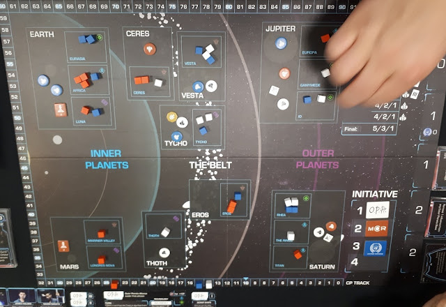 La partie régionale de la carte inclut des zones que les joueurs vont tenter de contrôler afin de gagner les bonus de chaque zone à la fin des 6 tours que compte la partie. La logistique, en somme.